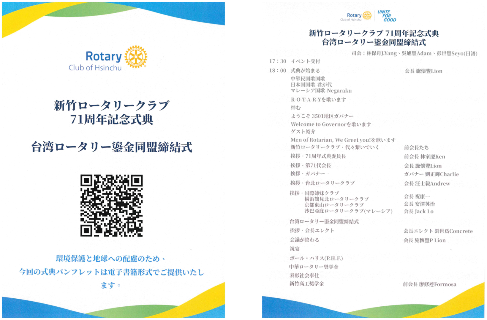 姉妹クラブである台湾 新竹ロータリークラブの71周年記念式典に参加しました。