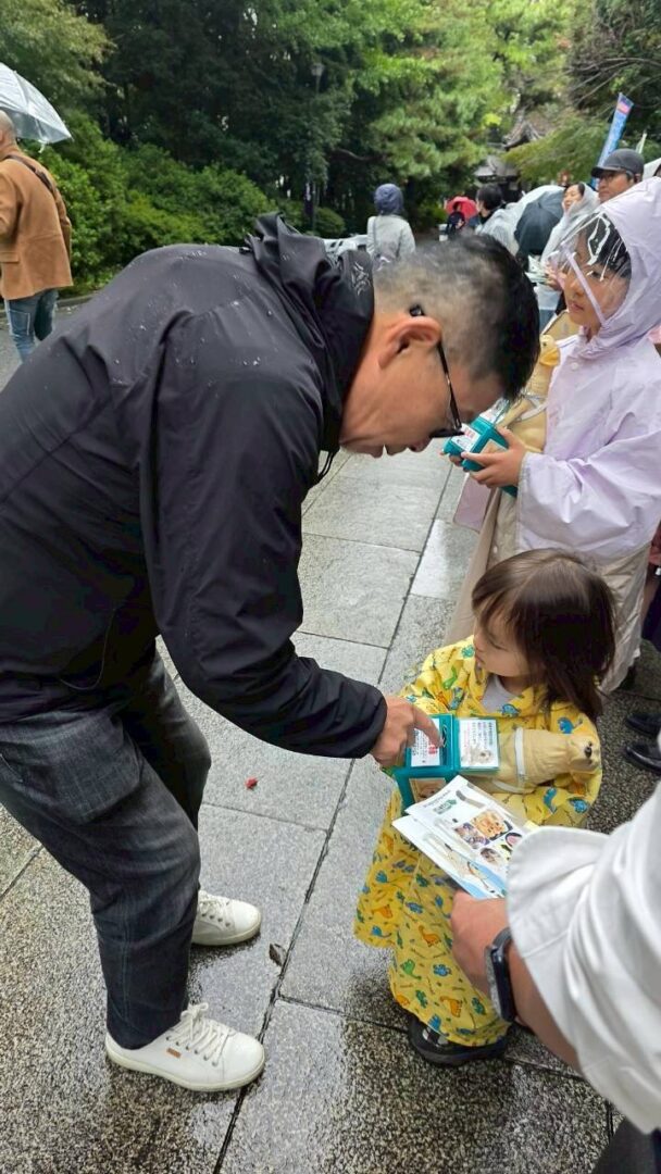 雨の中、盲導犬育成の爲の募金活動を行いました