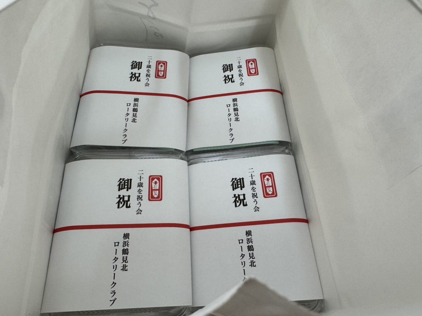 横浜鶴見北ロータリークラブではお祝いのお菓子(清月さんの 鶴見銘菓 よねまんじゅう)を